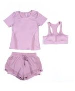 • المحتويات: (حمالة صدر + شورت + قميص قصير الأكمام).