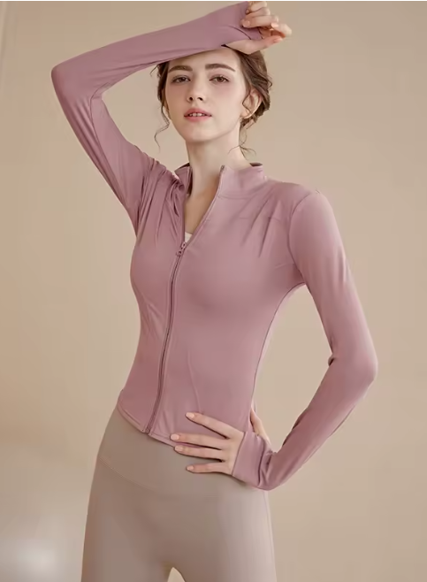 اجعلي كل لحظة من تمارينك أكثر راحة مع جاكيت رياضي بأكمام طويلة، يتم صنعه من نسيج خفيف الوزن وقابل للتنفس يساعد على امتصاص الرطوبة بشكل فعال