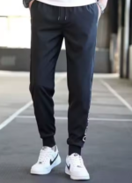 سروال رياضي رجالي مصنوع من خامة مقاومة للتجاعيد، ليحافظ على مظهرك الأنيق سواء أثناء ممارسة الرياضة أو بعد ارتدائه لفترات طويلة. كما يتميز بنظام إغلاق عبر رباط مطاطي يضمن ثباتًا مناسبًا وراحة كاملة دون أن يضغط على منطقة الخصر.