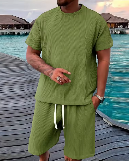 - طقم شورت وتيشيرت رجالي يمكنك ارتدائه في الأنشطة اليومية، كالمشي أو التسوق أو السفر.